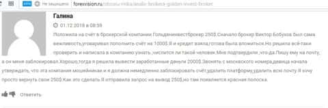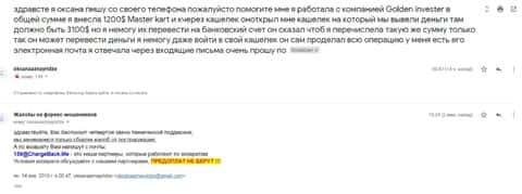 В данном разделе предлагаем ознакомиться с информационным материалом в виде жалобы на обманщиков Голден Инвест Брокер, которые не вывели деньги клиентке.