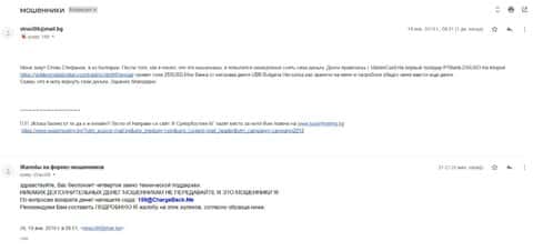 Женщина вложила деньги в брокерскую контору Голден Инвест Брокер и очень об этом пожалела. Оказывается ее обманули, а ведь так убедительно слышались речи звонаря и аналитика, которые выманивали деньги и проводили процесс обработки. После того как все получилось, жулики были уже не такими вежливыми, а наоборот хамили и в слитии депозита обвиняли только клиентку. Поэтому она подумала хорошо и написала заявление в сервис ChargeBack.Me чтобы ей помогли вернуть деньги.