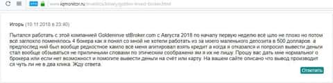 Жалоба на Голден Инвест Брокер - аферисты кинули человека почти на 3000 долларов
