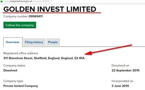 - Шулера кухни Голден Инвест Брокер прикрываются компания GoldenInvest LTD, которая зарегистрирована в Великобритании