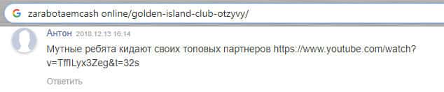 - Гневный отзыв про мошенническую контору Golden Island от пользователя
