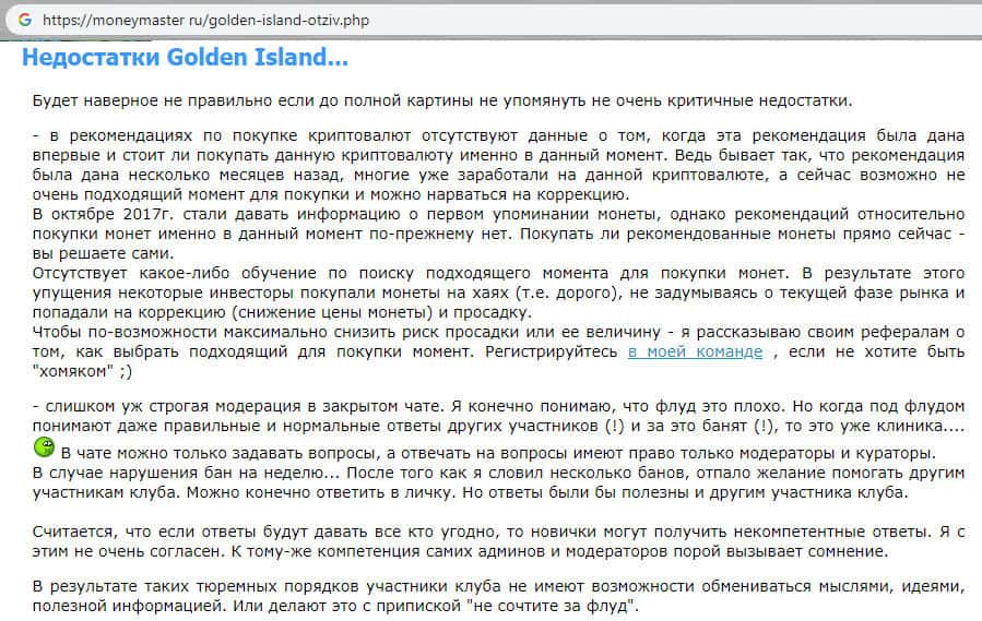- Отзыв пользователя об шарашкиной крипто-кухне Golden Island об их хайпе