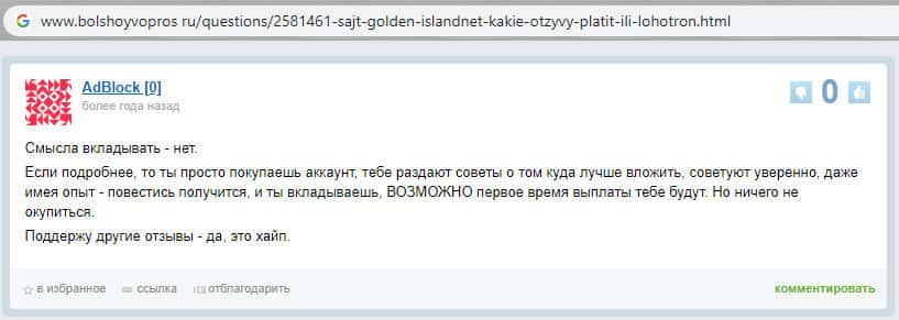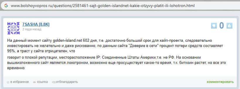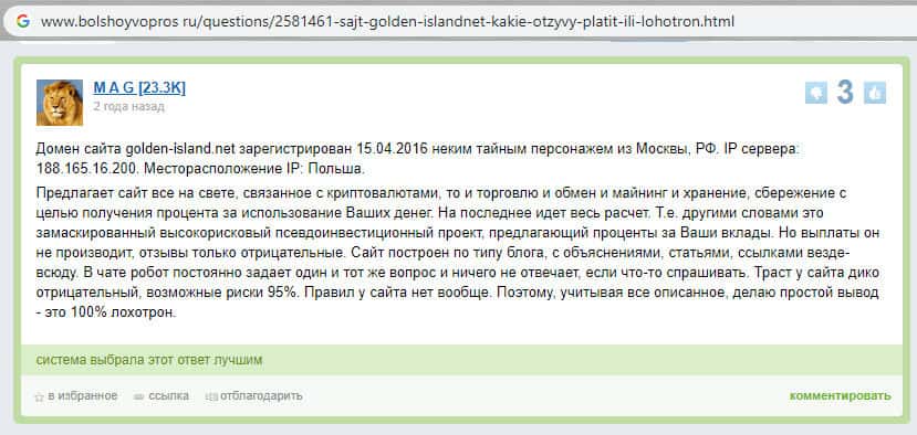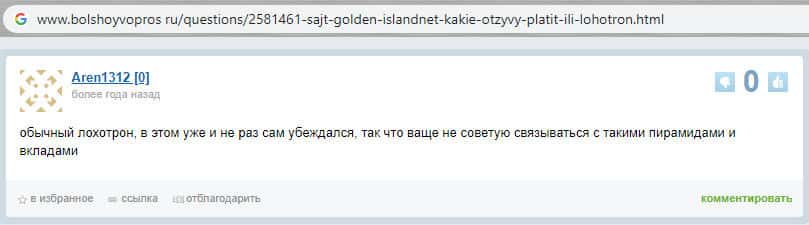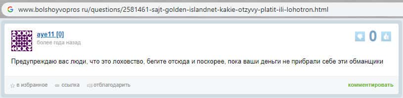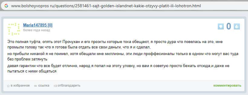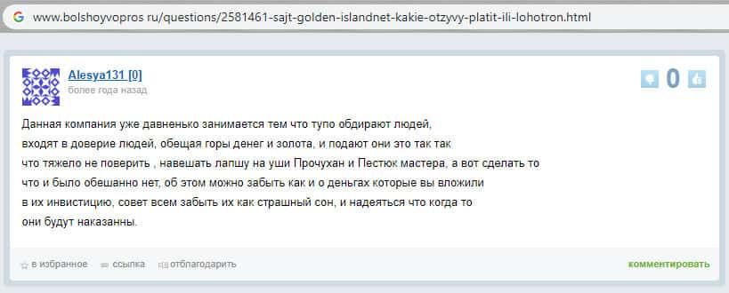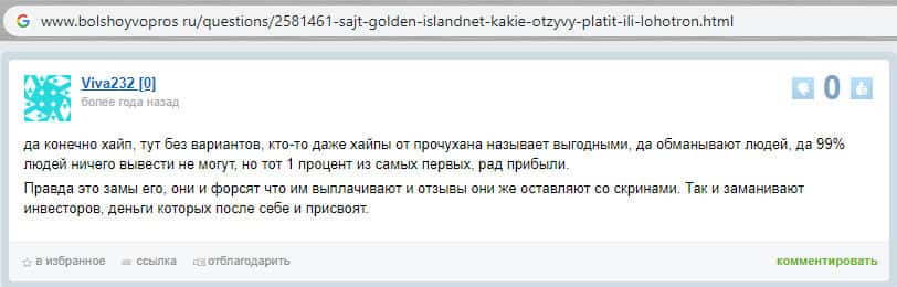 bolshoyvopros ru - сайт с отзывами реальных людей о конторе Golden Island
