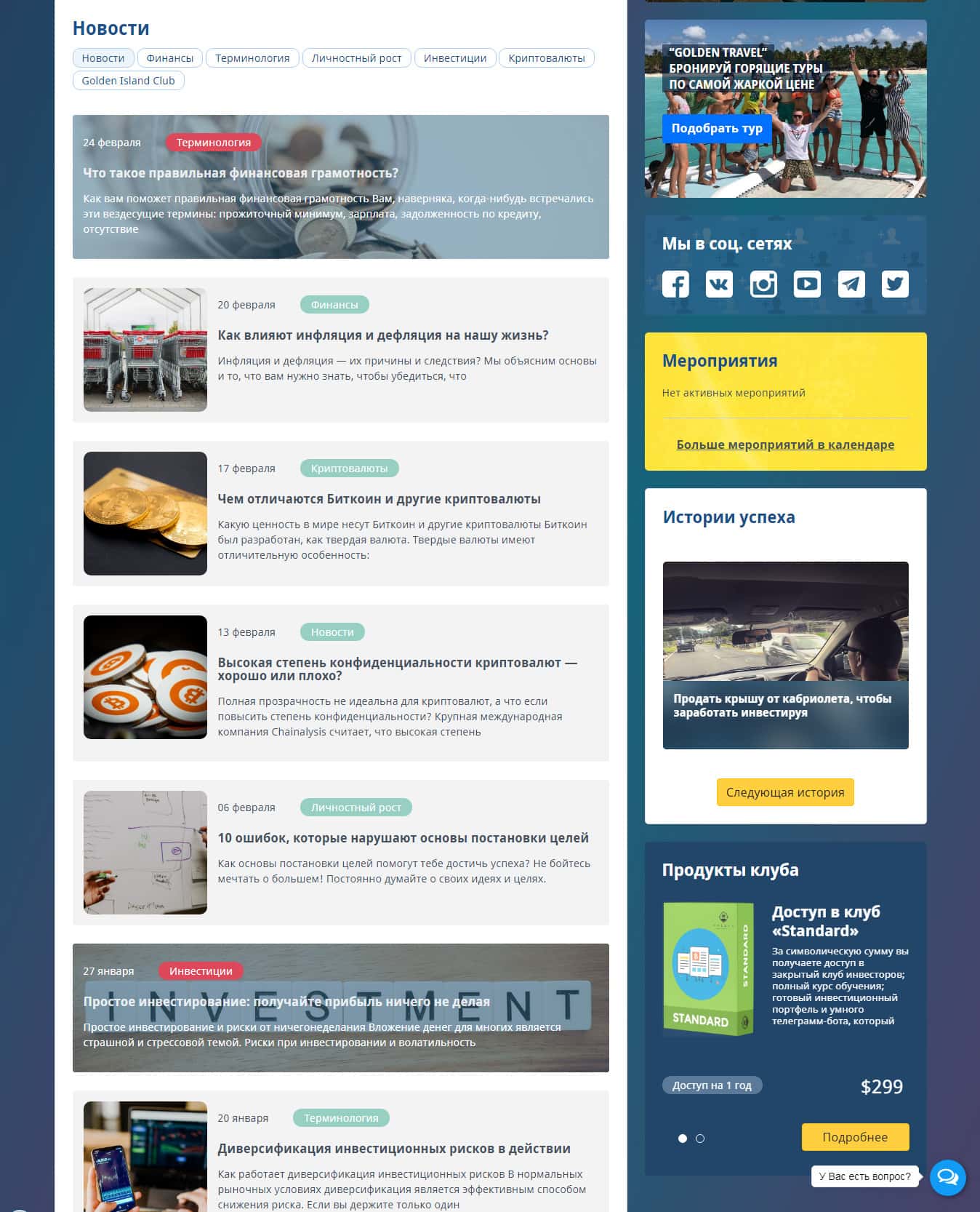 Далее, мошенники расположили, как мы подозреваем, фейковые новости о себе и новости про финансы в мире. В целом, просмотрев данные новости от данной шарашкиной конторы Golden Island, можно сделать вывод, что мошенники и впрямь умеют хорошо заговаривать зубы своим потенциальным клиентам, и в итоге они ведуться на этот дешевый развод от этой шараги.