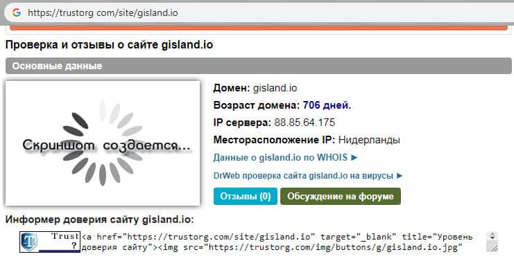 Информация о честности домена Golden Island, предоставленная сервисом проверки в сети