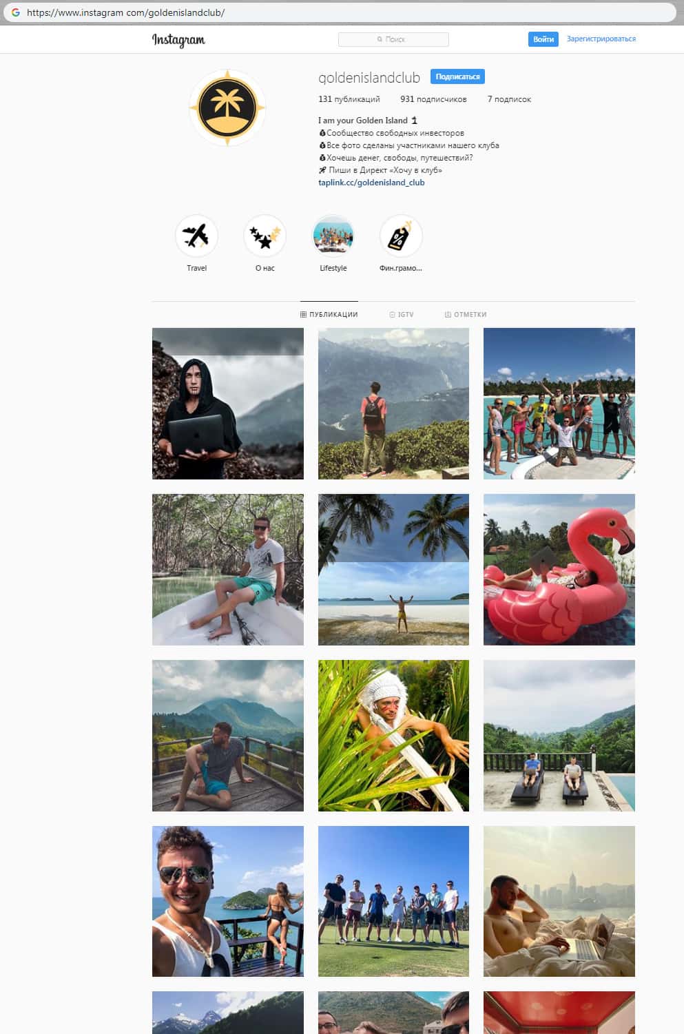 - страница в социальной сети Инстаграм мошеников из конторы Golden Island instagram com/goldenislandclub/