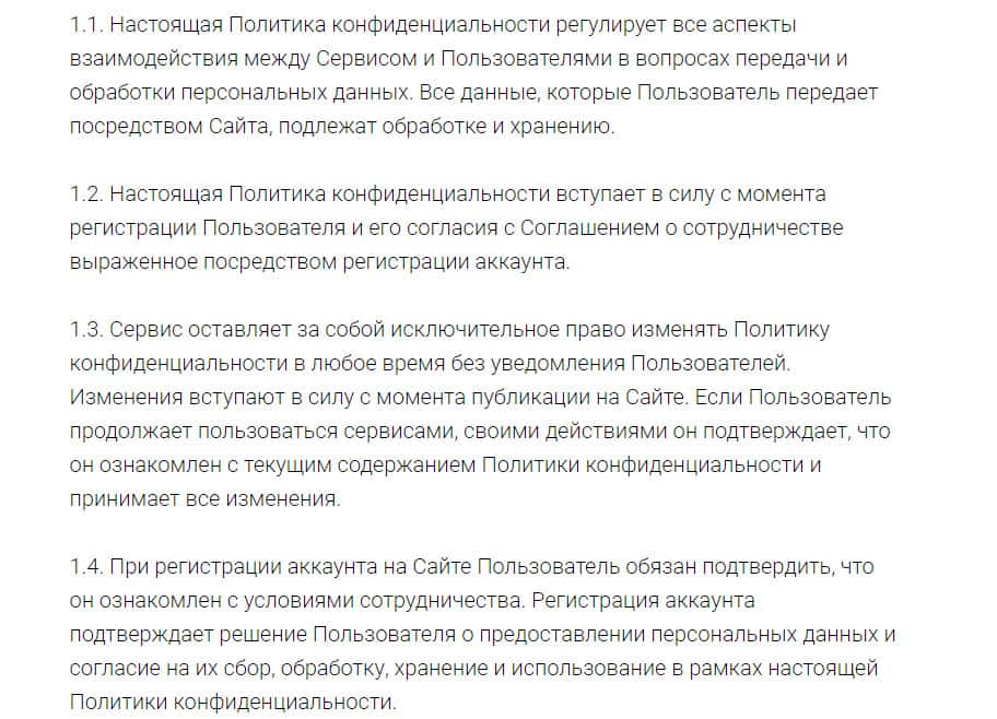 В общем положении указано, что данная контора несет всю ответственность о Ваших конфиденциальных данных на своём сайте с помощью серверов, которые созданы в соответствии с стандартами качества. Они не указывают, какой стандарт, ведь это довольно важная тема, при упоминании стандартов. Так же, при регистрации Вы безоговорочно принимаете её.