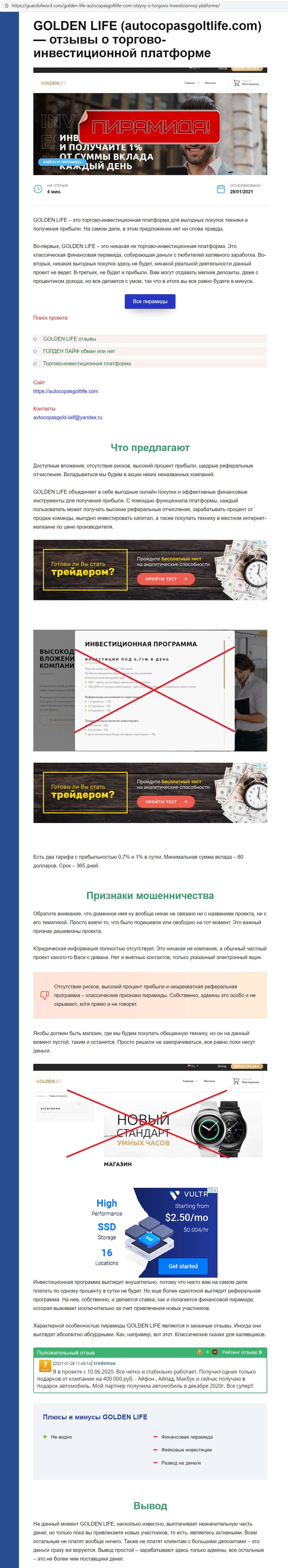 - Мнение интернет ресурсов о мошенническом проекте Голден Лайф