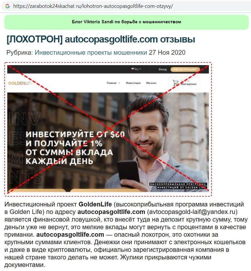 autocopasgoltlife com - главный интернет ресурс мошенников Голден Лайф