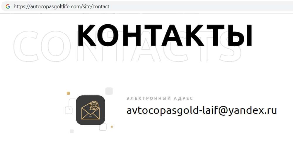 Недоконтора AutoCopasGoltLife в качестве контактных данных указала лишь адрес электронной почты, так как лохотрон не хочет общаться с клиентами напрямую. Почта: