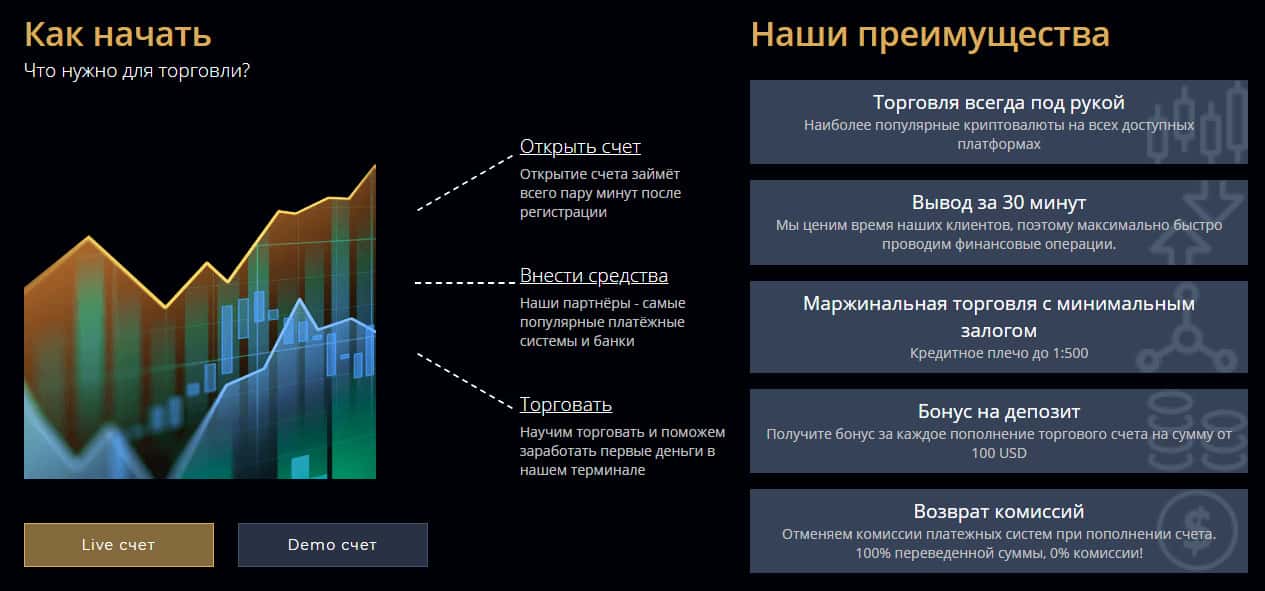 Далее на сайте у мошенников Голден СУ следует довольно банальный и типичный раздел с сомнительными преимуществами аферистов GoldenSU, на основании которых проходимцы Голден СУ будут разводить наивную клиентуру на деньги. На изображении, расположенном ниже, вы можете наглядно увидеть следующий раздел подвального сайта лохотрона GoldenSU.