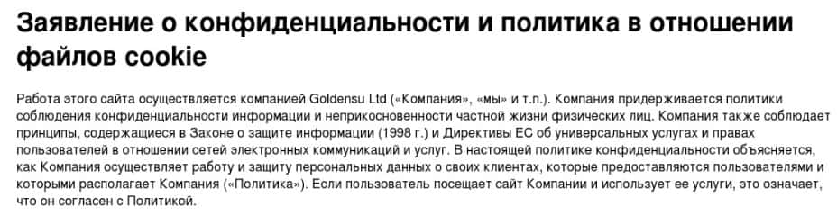 - Политика конфиденциальности мошенников GoldenSU