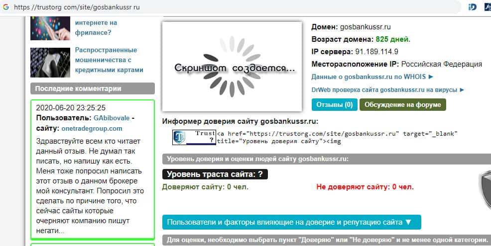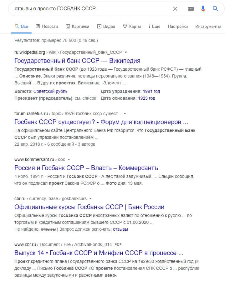 Отсутствие информации и отзывов на просторах интернета о воровском интернет-ресурсе злодеев из ГОСБАНК СССР
