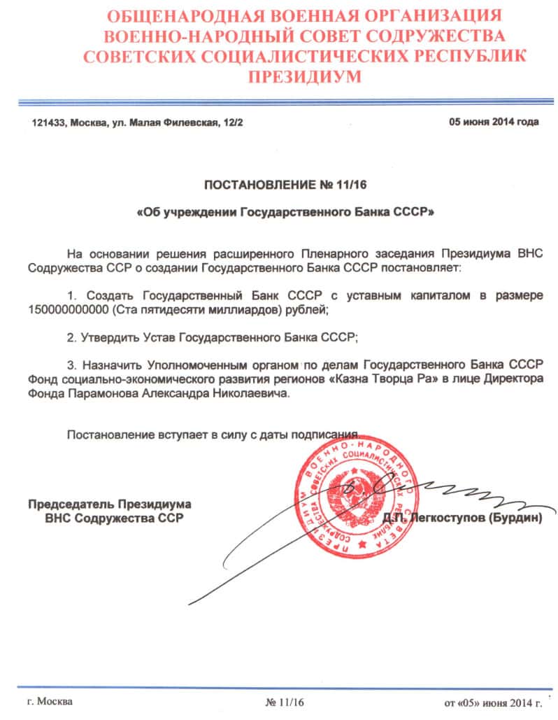 - Сомнительное постановление ВНС СССР о создании Государственного Банка СССР