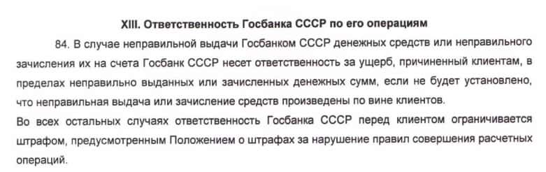В разделе "Ответственность Госбанка СССР по его операциям" жулики уверяют, что в случае неправильной выдачи денег или неверного зачисления их на счета, то они несут ответственность за ущерб, причиненный клиентам, тем самым многие наивные и незнающие пользователи покупаются на эти уверения. Но, по факту, никаких компенсаций никогда не происходит.