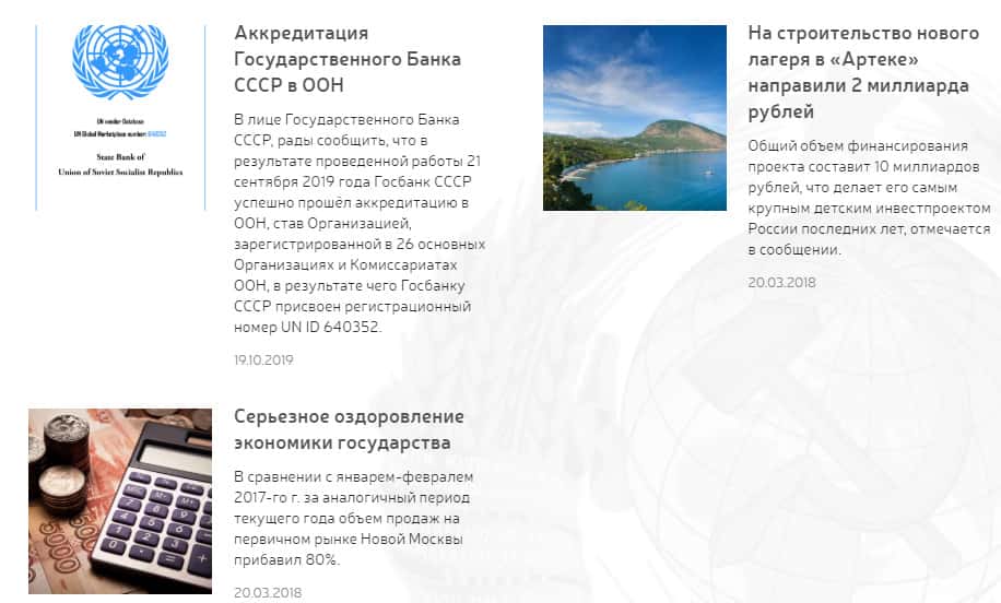 Авантюрная компания ВНС СССР разглагольствует на своем официальном интернет-портале о возрождении Советского Союза, пытаются тем самым возобновить доверие и ностальгию клиентов, которые помнят те времена. А, по факту, прикрываясь этой идеей, грабят несчастных пользователей и оставляют без гроша кармана на свои "благие цели".