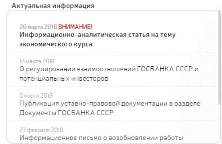 Следующее изображении свидетельствует о еще одном подтверждении того, что весь этот интернет-портал является обыкновенной фикцией и прикрытием незаконной деятельности данного шарашкиного проекта ГОСБАНК СССР, который на самом деле непонятно чем занимается. Когда нажимаем на любую из ссылок в разделе "Актуальная информация", она оказывается пустой.