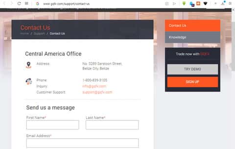 Во вкладке контактной информации внизу главной страницы указан главный офис в Центральной Америке, в государстве Белизе с телефоном и сайтом. На сайте находится номер телефона, который при наборе не берут трубку, хотя написано о 24/7 технической поддержке. Также есть адрес электронной почты, который игнорит своих клиентов, но об этом попозже. Суть такова, что Джи Кью ФХ - жулики, живущие за чужие деньги.