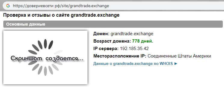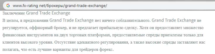 - Данные о честности домена Гранд Трейд Эксчэндж предоставленные известным сайтом