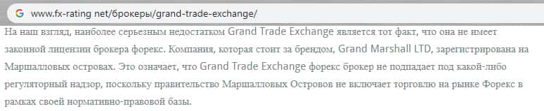 Негативное высказывание по поводу лицензии у шулерской организации Гранд Трейд Эксчэндж