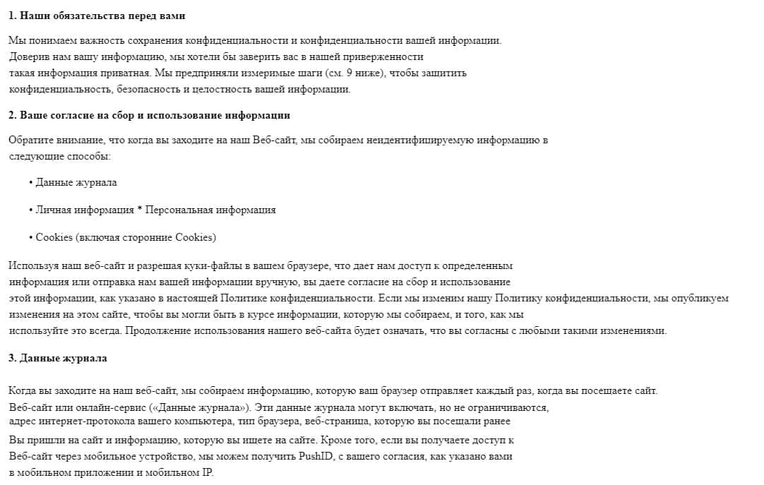 Обзор на политику конфиденциальности и её изъяны у мошенников GrandTrade Exchange