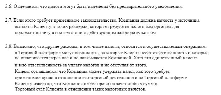 В самом начале своего договора мошенническая контора GrandTrade Exchange отмечает тот факт, что они свободно могут изменить стоимость налогов без уведомления клиента об этом. Кроме того, шулера пытаются перекинуть всю ответственность на трейдера при удобном случае. А такой случай и сама контора может Вам попросту подстроить и оказаться не виновной.