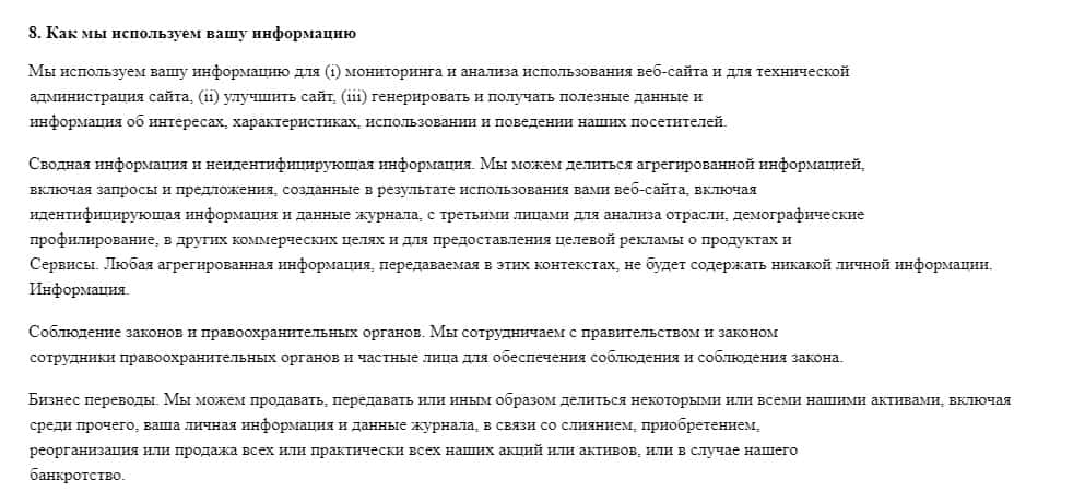 Далее, мошенники будут пытаться залить Вам в уши информацию о том, как они используют Ваши конфиденциальные данные. Как раньше говорилось, лохотрон Гранд Трейд Эксчэндж использует Ваши данные для послания контента. Но, в данном документе описывается, что Ваша конфиденциальная информация может быть передана третьим лицам.
