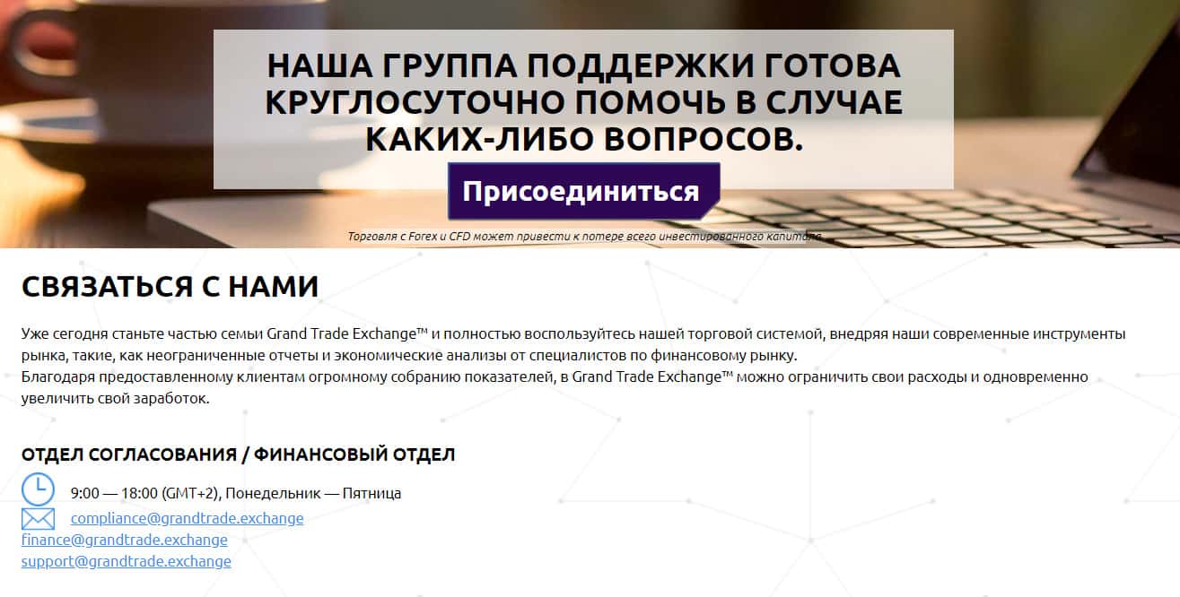 - электронные почты поддержек лохотрона GrandTrade Exhage compliance@grandtrade exchange finance@grandtrade exchange support@grandtrade exchange