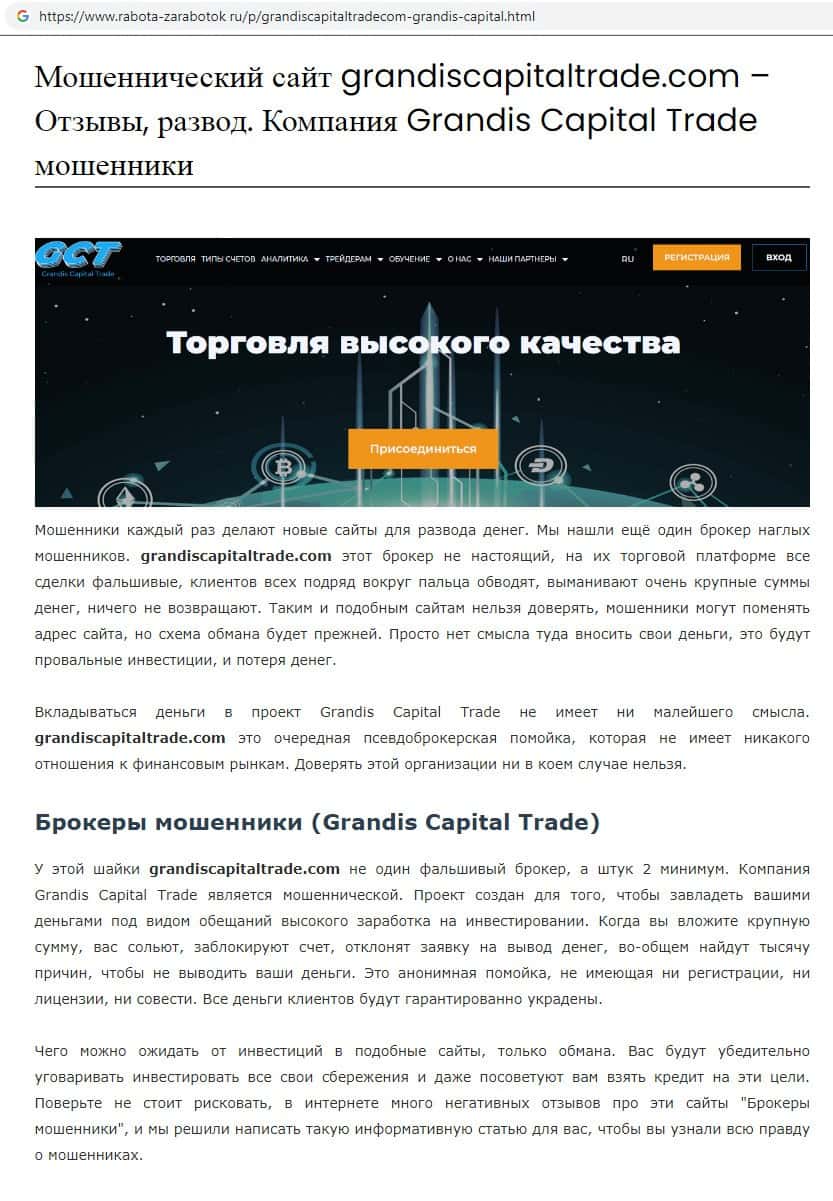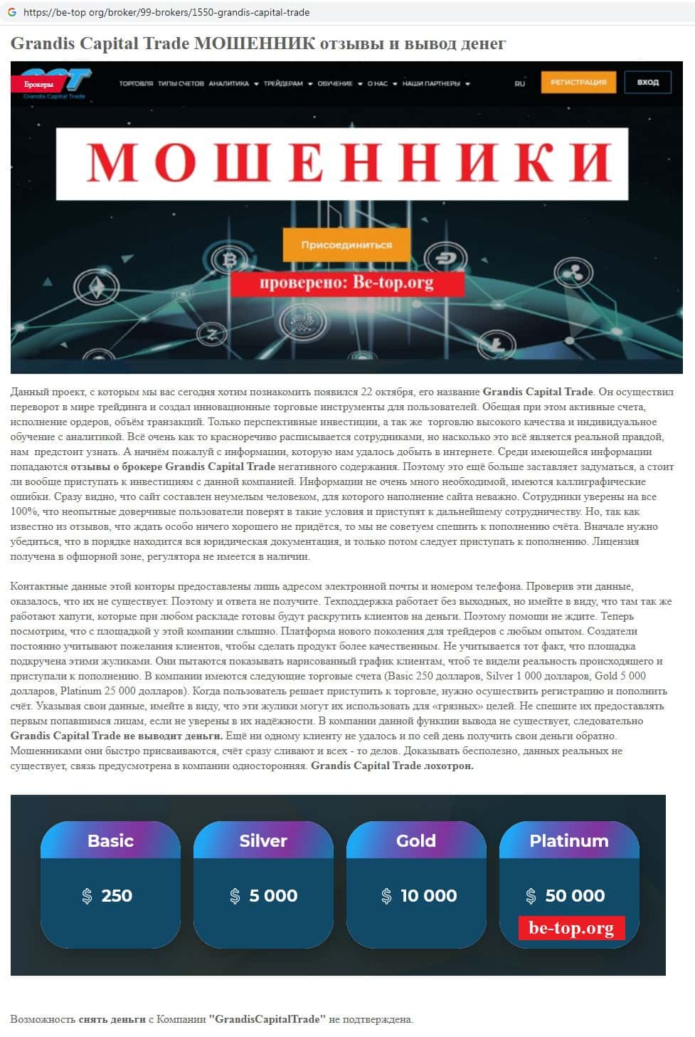 GrandisCapitalTrade - обзоры жуликов на других интернет-порталах