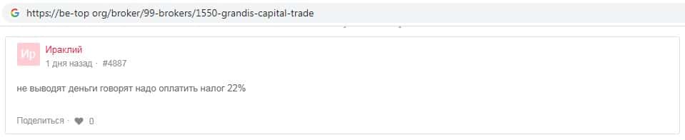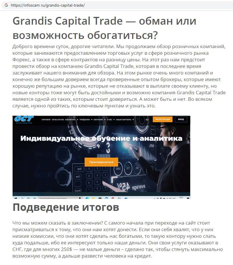 - Отзывы о скам-конторе Грандис Капитал Трейд, ныне присутствующие в сети