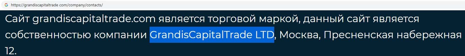 Юридические лица, которые являются владельцами сайта Grandis Capital Trade