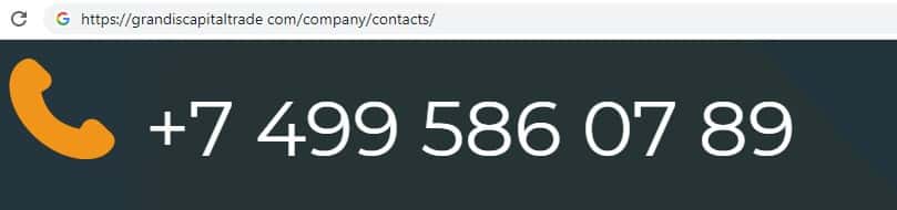 Аферисты Grandis Capital Trade на своем дырявом сайте указали номер контактного телефона, с которого навязчиво названивают потенциальным жертвам: