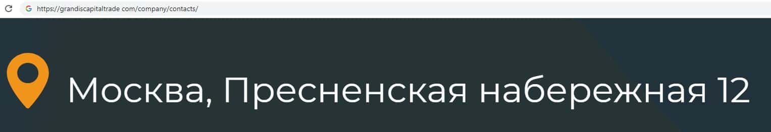 Лохотронщики Grandis Capital Trade указали адрес местонахождения главного офиса своей компании, который наверняка липовый: