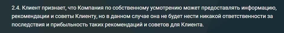 Согласно тому, что аферисты пишут в соглашении, компания Grandis Capital Trade не несет никакой ответственности за не полученную прибыль клиентом, а так же за возможные убытки.