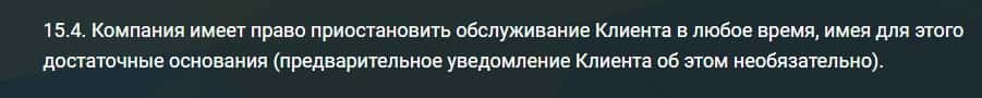 Псевдо-брокер Grandis Capital Trade вправе заморозить текущий баланс, не выплачивая клиенту ни копейки, без объяснения причин.
