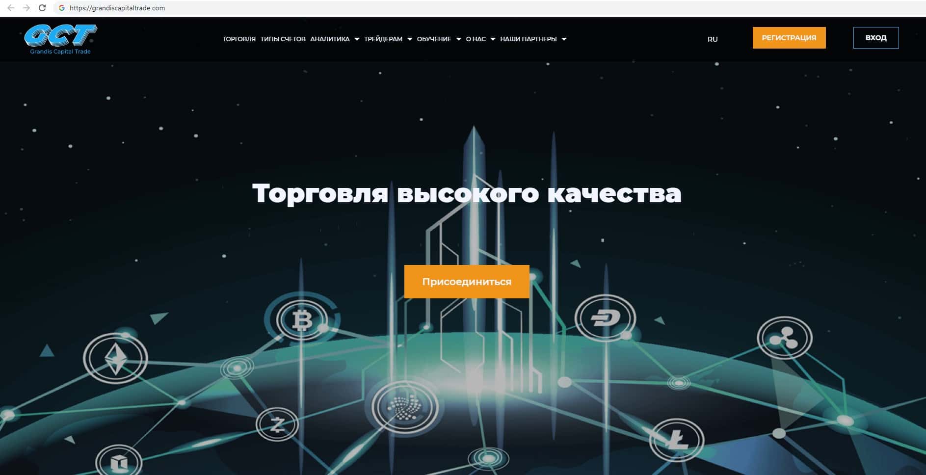 - Обзор главной страницы мошеннической организации Грандис Капитал Трейд