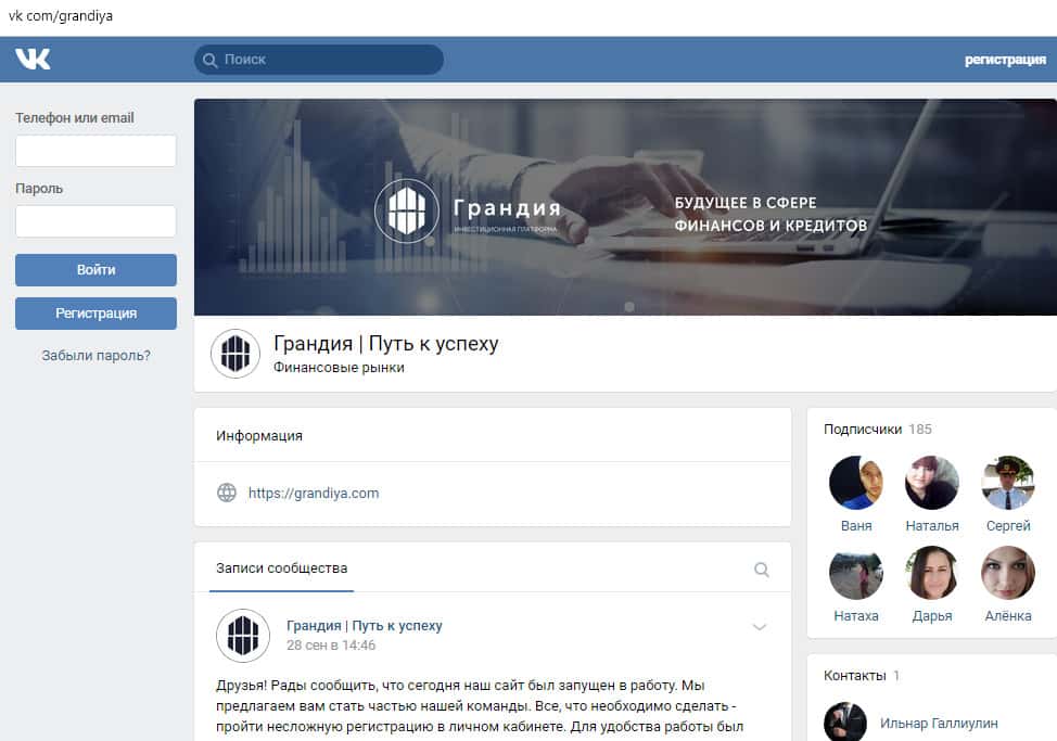 Исследуя мошенническую контору Грандия мы заметили такую вещь, что они используют различные способы для поиска новых жертв. Жулики добрались также до социальных сетей, где обычно много времени проводят люди. Чтобы всех предупредить, ниже мы опубликуем скриншоты и ссылки на их группы: