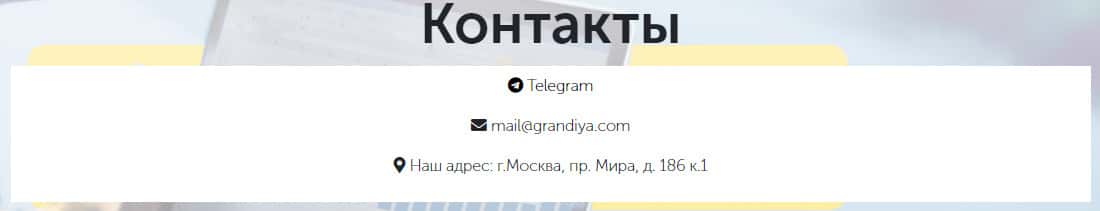 Контактные данные для связи с шарлатанами Grandiya