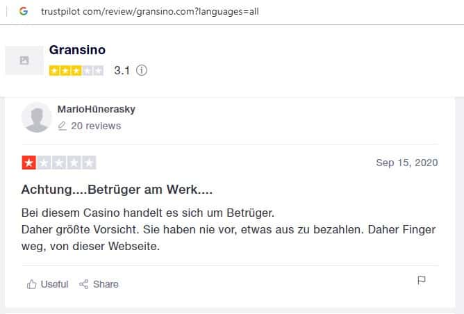 Реальные отзывы игроков, которые прогорели с шулерами Гранзино