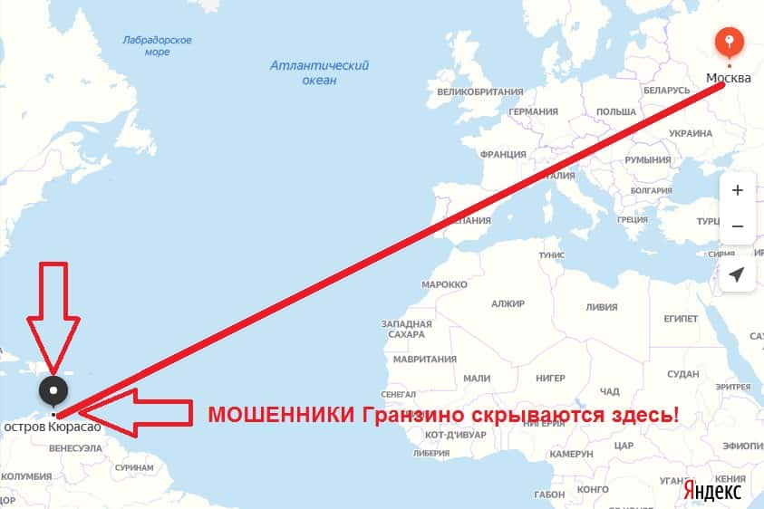 Лоховозка Гранзино официально зарегистрирована на Кюрасао, то есть находится в оффшорной юрисдикцией. Там мошенники со всего мира чувствуют себя в безопасности!