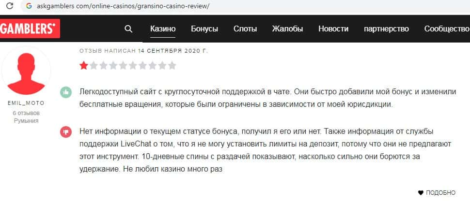 - Контора онлайн-казино Гранзино не стремится удержать своих клиентов!