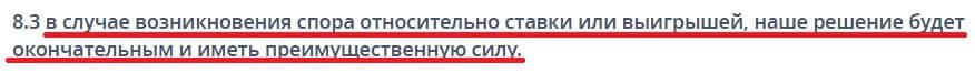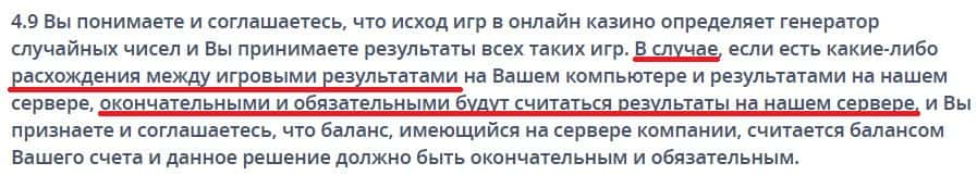 Следующий подвох от лоховодов Gransino - это пункт 4.9, в котором жулики закрепили за собой право решать исход игры в свою пользу. Любой результат шараг может перевести в сою сторону.