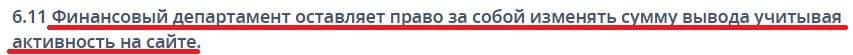 Лохотронщики Gransino могут по своему усмотрению изменять суммы вывода пользователей, мотивируя такие действия малой активностью клиента на их сайте!