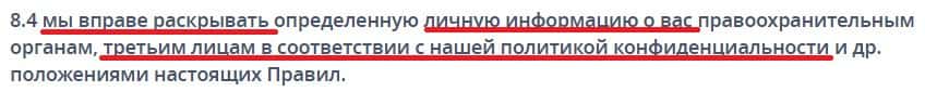 Следующий сюрприз для всех клиентов шаражкиной конторы Gransino - это пункт 8.4! В нем идет речь о том, что персональные данные игроков мошенники могут передавать третьим лица!