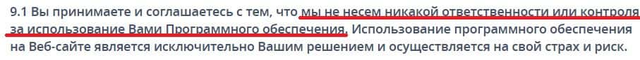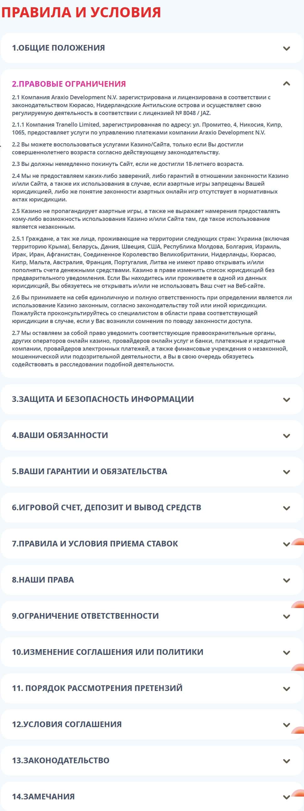 Ниже представлен скриншот пользовательского соглашения с официального сайта лоховозки Gransino.