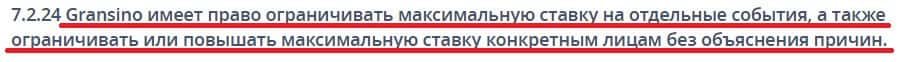 Следующая ловушка в договоре с лоховодами Gransino - это пункт 7.2.24, в котором идет речь о том, что без уведомлений жулики могут повышать сумму ставки отдельным игрокам.