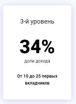 Третий уровень предусматривает до 34% комиссии по ставкам на спорт и до 25 первых вкладчиков.