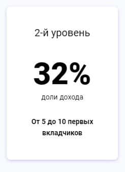 Второй уровень, по обещаниям жуликов, даст игрокам возможность до 32% доходности и до 10 первых вкладчиков.