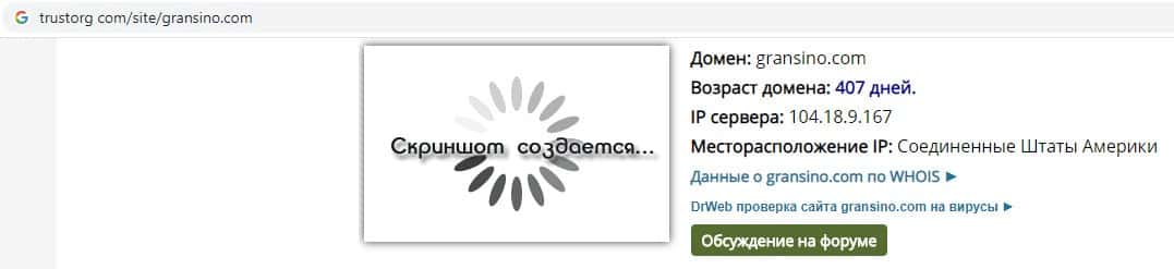 Проверка веб-сервиса шарлатанской конторы Гранзино показала реальный возраст домена. Оказалось, что на момент написания статьи он составил 407 дней.