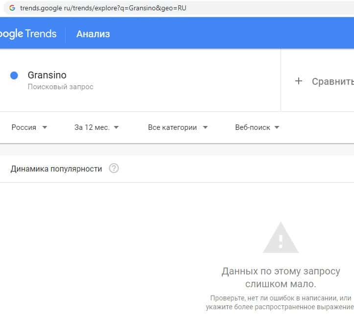 - Какое количества брендовых запросов в гугл.трендах по Gransino?
